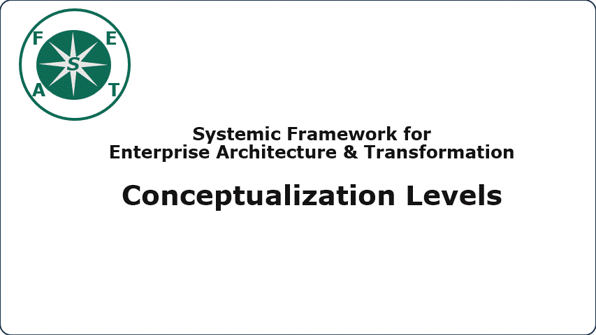 DescriptionThe Conceptualization Levels family categorizes family of concepts according to level of conceptual abstraction. Each conceptualization family represents a generalized model of concepts derived from a specific reality. It expresses the common characteristics of these concepts to provide a simplified representation with the broader aim of unifying their manipulation. Each level is applicable to various types of resources being modeled, such as software, hardware, or organizational resources, and ranges from the most concrete dimensions (sometimes referred to as physical levels) to more abstract dimensions (sometimes called logical levels). The most abstract level is the conceptual level, where the notion of a resource is disregarded. For instance, the "vision" function exists at the conceptual level, while the eye is situated at the resource level. There can be logical models of the eye and multiple physical models of eyes. |